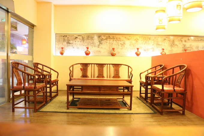 沙發(fā)整體的部件為:4張經(jīng)典圈椅(單人位)+ 1條長(zhǎng)沙發(fā)(三人位)+ 1張大平幾 + 2條高幾組成,我們還是來(lái)看沙發(fā)的各處細(xì)節(jié)吧: