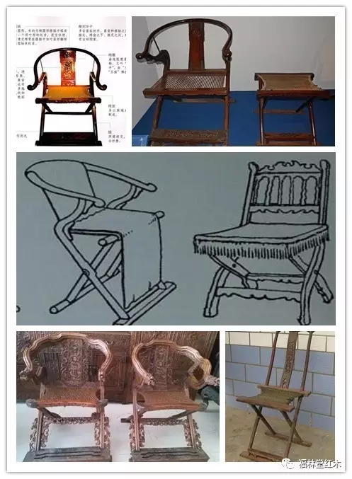 明式交椅承襲元代交椅的形制,有圓后背交椅與直后背交椅之分,用材以黃花梨為貴。由于清代居室中有許多種豪華、舒適的椅式,交椅有失風(fēng)雅,遂逐漸減少了。清代宮廷中也有交椅,但僅作為鹵簿儀杖中的器物使用,制作精致,雕飾繁縟,華麗富貴,只是偶爾使用。(下圖就是各個(gè)時(shí)期交椅的圖片,可以觀賞一下)